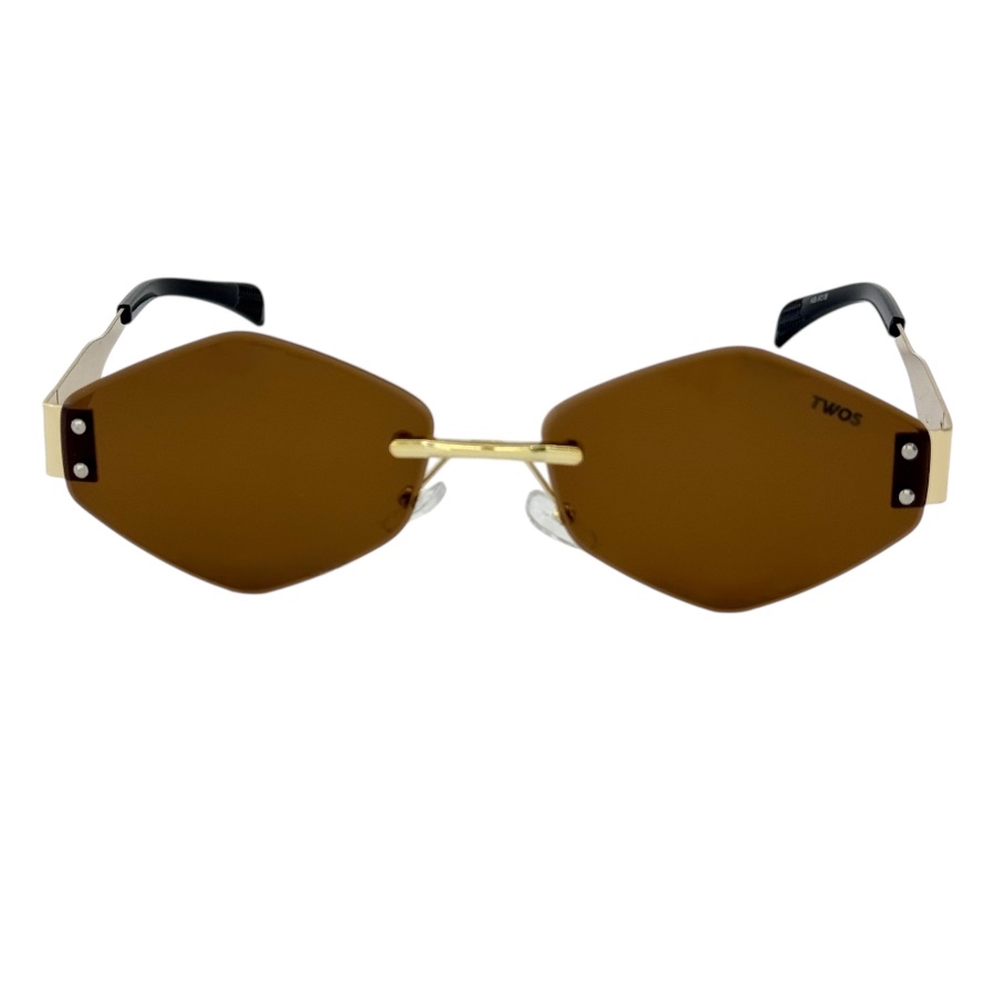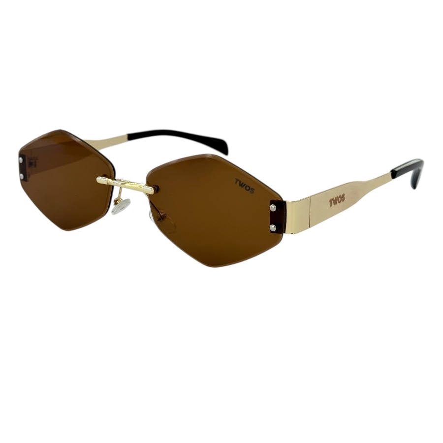 TWOS modelo geométrico retrô na dourada com lentes marrom.